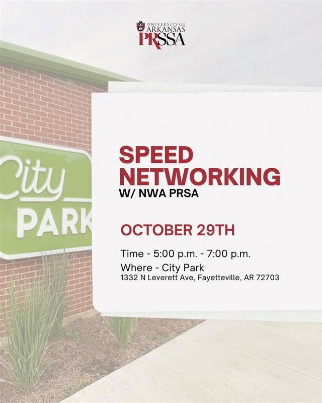 Get ready to mingle and make connections at PRSSA Speed Networking - meet new people, exchange contacts, and build your professional network. Get ready to mingle and make connections at the Speed Networking event with University of Arkansas...